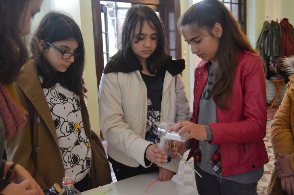 ‘’Dezavantajlı olarak gördüğümüz, öğrenci sayısı fazla ama öğretmen açığı olan yerlerde etkinliklerimizi gerçekleştirmeye, köy okullarına gitmeye çalışıyoruz. Bu etkinliklerde bölümlerimizin laboratuvarlarından aldığımız araç gereçlerle (mikroskop gibi) deneyler yapıyoruz. Temel bilim nedir, nasıl çalışılır, bilimsel sorular nasıl sorulur, hipotez nasıl kurulur kavramları üzerine konuşmak, çocuklara genel olarak merak etmeyi aşılamak üzerine çalışıyoruz. Deneylerimiz iki gruptan oluşuyor birinci grup günlük hayatta görme imkânları olmayan mikroskop, mercekler kullanılarak yapılan gözlemler üzerine ikinci grup ise market alışverişiyle bulabilecekleri kendileri de evde devam ettirebilecekleri deneyler yapıyoruz.