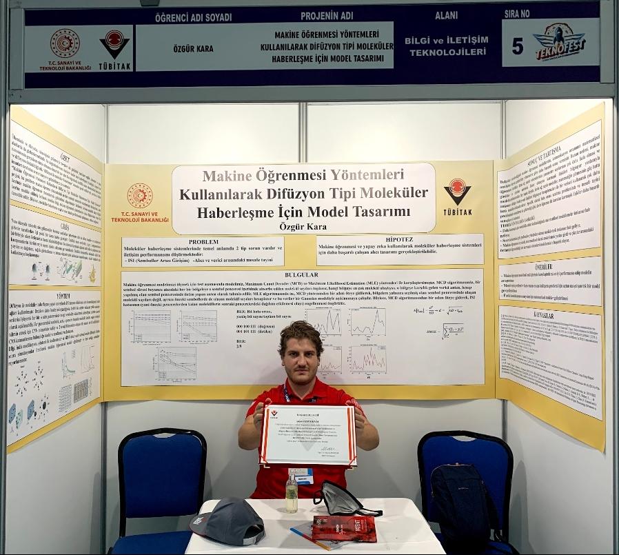 Boğaziçi Üniversitesi öğrenci, akademisyen ve mezunlarının ulusal ve uluslararası düzeyde başarılarına bir yenisi daha eklendi. Boğaziçi Üniversitesi Elektrik-Elektronik Mühendisliği dördüncü sınıf öğrencisi Özgür Kara, TÜBİTAK 2242 Üniversite Öğrencileri Araştırma Projeleri Yarışması Bilgi ve İletişim Teknolojileri kategorisinde üçüncülüğe layık görüldü. TEKNOFEST 2021’de sergilenen ve Elektrik-Elektronik Mühendisliği öğretim üyesi Doç. Dr. Ali Emre Pusane’nin danışmanlığında gerçekleşen araştırma projesiyle, kanser gibi hastalıkların tedavisinde kullanılabilecek mikro boyuttaki cihazların moleküler iletişimine odaklanıldığını belirten Özgür Kara, diğerlerine göre 10 ila 100 kat arasında performans gösteren alıcı tasarımları hakkında şunları söylüyor: