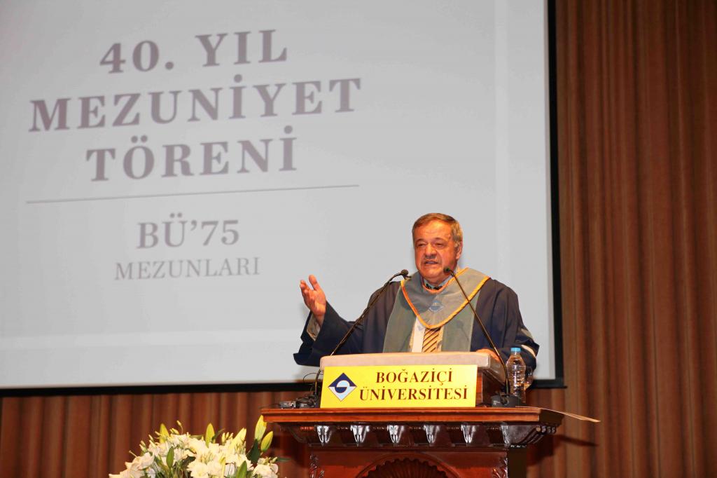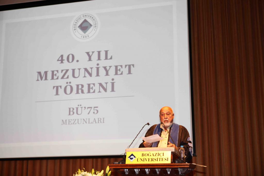 ‘’Bizim kültürümüzde, edebiyatımızda, örf ve adetlerimizde 40 yıl çok uzun bir süre ifade eder. Ancak bizler bugün burada bu sürenin göz açıp kapayana dek geçmiş olduğunu hissediyoruz. 40 yıl dolu dolu yaşandığında ömrümüzün en değerli zamanını oluşturur. Bugün burada bizlerle birlikte olup üniversitemizin 40 yıl içinde geçirdiği değişimi görüyorsunuz. Ancak değişmeyen bir gerçek var; o da Boğaziçi’nin kültürüyle, hocalarıyla, öğrencileriyle, mezunlarıyla Türkiye’nin en iyi üniversitesi olduğu ve öyle olmaya devam edeceğidir’’.