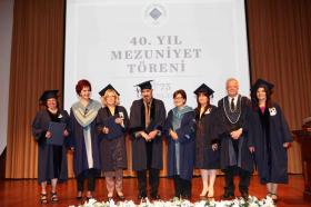 Hocalar adına törene katılan Prof. Dr. Mustafa Dilber ve Prof. Dr. Yorgo İstefanopulos ise 40 yıl ötesinden anılar ve esprilerle süsledikleri konuşmalarıyla dinleyenlere seslendiler. Törene katılamayan hocalardan Prof. Dr. Güven Alpay ise 40. Yıl mezunlarını mesajla kutladı.