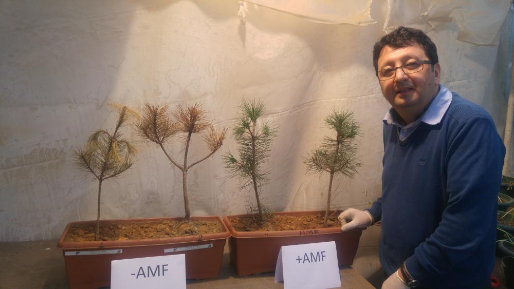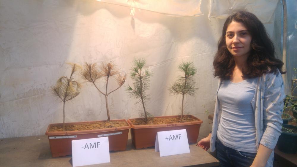 Boğaziçi’ndeki sera çalışması 2018’in Temmuz – Ekim ayları arasında yapıldı. Bu çalışmayı Muğla orman bölgesinden getirilen toprak, çam ve meşe fidanları kullanarak gerçekleştirmiştik. Bu çalışma 12160 kodlu “Microsymbiont GLOMALIN as new tool to understand and alleviate the environmental stress response on different contaminated sites triggered by mine tailing among GLOBAL CHANGE conditions” BAP Start-Up projesi içerisinde yer alan çalışmalardan biriydi. Çalışma esnasında Muğla bölgesinin uzun yıllar yaz dönemi yağışını baz alarak toprağa su verdik. Çalışma sonucunda su stresi altında AMF aşılaması yaptığımız ağaçların toprak neminin, AMF eklemediğimiz kontrol gruplarına göre daha yüksek olduğu gözlemledik. Bu da bitkilerle etkileşime giren AMF’nin kuraklık direncini artırmadaki önemli rolünü açığa çıkarmış oldu.