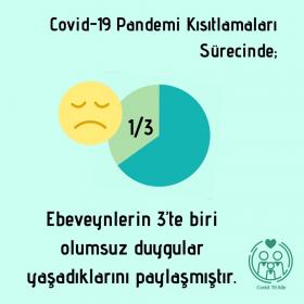 Katılımcı ebeveynlerin 3'te biri karantina sürecinde bir dizi rahatsız edici duygu yaşadıklarını belirttir. Ebeveynlerin %30'u olumlu duygular yaşamadığını, %32'si durumlara aşırı tepki verme eğiliminde olduklarını, %34'ü bazen tedirgin hissettiklerini, %32'si bir işi yapmalarını engelleyen her şeye karşı hoşgörüsüz olduklarını ve %32'si alıngan 15 olduklarını hissettiklerini ifade etti. Katılımcıların bir kısmı ise nefes almada sıkıntı yaşama, ağızda kuruluk, titreme, kalbin hızlı atması gibi fiziksel sorunlar yaşadığını belirtti. Covid-19 öncesinde katılımcıların %67'si kendini rahat hissettiğini, %82'si kendini işe yarar hissettiğini, %68'i kendini diğer insanlara yakın hissettiğini, %73'ü problemlerle iyi başa çıkabildiğini ve %75'i gelecekle ilgili iyimser düşündüğünü ifade ederken ebeveynlerin Covid-19 sonrası duygu durumlarında olumsuzluklar yaşadıkları belirlendi.