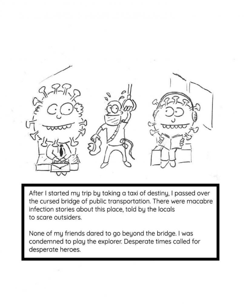 Birincilik kazandığım çalışma yirmi sayfadan oluşan bir çizgi roman. Tasarım süreci yaklaşık olarak bir hafta sürdü. Çizim ve genel düzenleme de iki günümü aldı. Her çizim belli boyutlardaki karelerden oluşuyor.