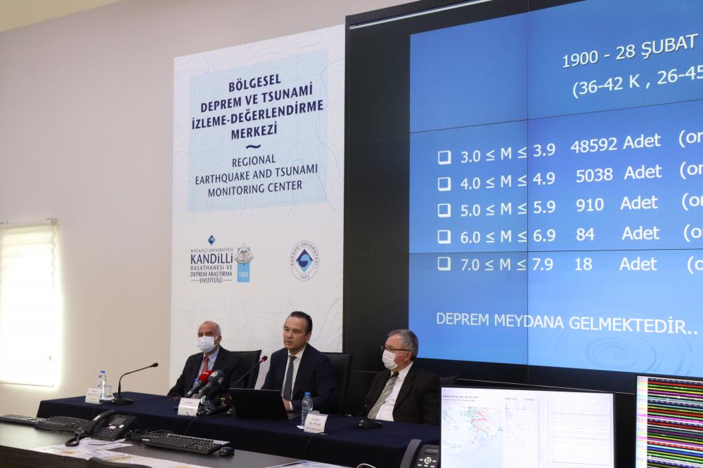 1-7 Mart Deprem Haftası dolayısıyla Boğaziçi Üniversitesi Kandilli Rasathanesi ve Deprem Araştırma Enstitüsü (KRDAE) Müdürü Prof. Dr. Haluk Özener, KRDAE Müdür Yardımcısı Prof. Dr. Ali Pınar ile KRDAE Bölgesel Deprem-Tsunami İzleme ve Değerlendirme Merkezi Müdürü Doç. Dr. Doğan Kalafat’ın katılımıyla basın toplantısı düzenlendi. Türkiye’deki deprem aktivitesiyle ilgili bilgi paylaşmak ve deprem riskleri konusunda farkındalık yaratmak amacıyla yapılan basın toplantısında, KRDAE’nin güncel çalışmaları ve elde edilen veriler de sunumlarla paylaşıldı.