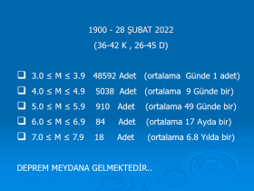 Dünyada 1900-2021 yılları arasında 1470 tane 7’den büyük deprem olduğuna ve bu depremlerde iki milyondan fazla insanın hayatını kaybettiğine dikkat çeken Prof. Dr. Özener, içinde bulunduğumuz coğrafyada 2021 yılı sonuna kadar büyüklüğü 4’ün üzerinde 11 bin 302 deprem olduğunu söyledi. “Deprem sürpriz değil, bu coğrafya çok aktif, neredeyse her gün 3.0-3.9 arasında bir deprem oluyor” diyen Prof. Dr. Özener, deprem sayısının artmasının büyük bir depremin habercisi olmayabileceğini belirtti. Marmara’daki fay hatlarının özelliklerini çok iyi bildiklerini ise şu şekilde ifade etti: