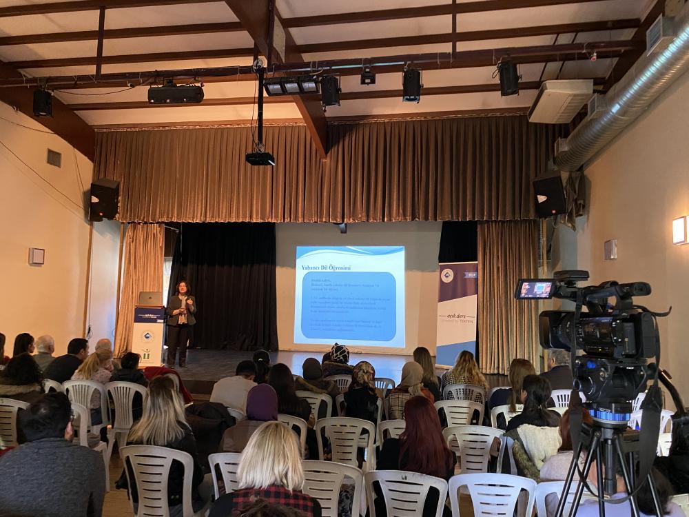 Prof. Dr. Belma Haznedar’ın sunumunu bitirmesini ardından Haznedar’a soru ve yorumlarını ileten katılımcılar, çocuklarda yabancı dil öğrenime dair merak ettiklerini öğrenme fırsatı buldular.