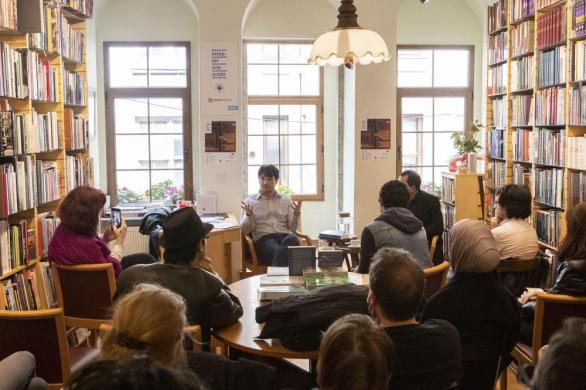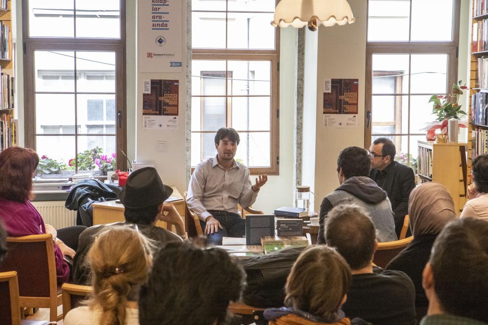 6 Nisan’da Homer Kitabevi’nde gerçekleşen, moderatörlüğünü Koç Üniversitesi İngiliz Dili ve Karşılaştırmalı Edebiyat Bölümü’nden Dr. Mert Bahadır Reisoğlu’nun yaptığı söyleşide Benoit Ellerbach kitabının ortaya çıkış hikâyesini katılımcılara aktardı. Doktora çalışmaları sırasında Alman edebiyatında yabancı yazarların yeri ve göçmen yazarların Alman edebiyatına sunduğu katkılarla ilgilendiğini ifade eden Ellerbach, Almanya’da yabancı yazarların eserlerinin ikincil edebiyat ürünü şeklinde değerlendirildiğini ve edebiyat incelemeleri için genellikle etnik kökenleri çerçevesinde bir kategorileşmeye maruz kaldıklarını dile getirdi. “Arap-Alman asıllı yazar” şeklindeki gruplaştırmaların edebiyat incelemeleri için problemli olduğunu çünkü her yazarın kendi edebi kişiliğinin ortaya çıkarılması yani bireyselleştirilmesi gerektiğini vurgulayan Ellerbach, bu bağlamda Rafik Schami’nin yazın hayatını tarihselliği içerisinde değerlendirecek bir monografi çalışması yapmaya karar verdiğini belirtti.