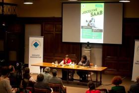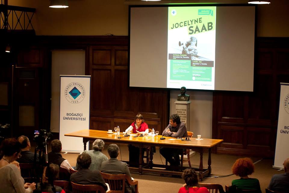 Boğaziçi Üniversitesi’nin uluslararası misafir programı 'Boğaziçi Chronicles'ın konuğu olarak 2015 yılının sonbahar döneminde Boğaziçi Üniversitesi kampüsünde yaklaşık bir ay süreyle ikamet ederek çeşitli etkinliklere katılan Saab, ülkesi Lübnan’ın en karanlık dönemlerine tanıklık etmiş, evi kundaklanmış biri olarak iç savaşın tüm dehşetini ortaya koyan çeşitli belgesellere imza atmış ve uluslararası çapta tanınmış bir belgesel sinemacıydı.