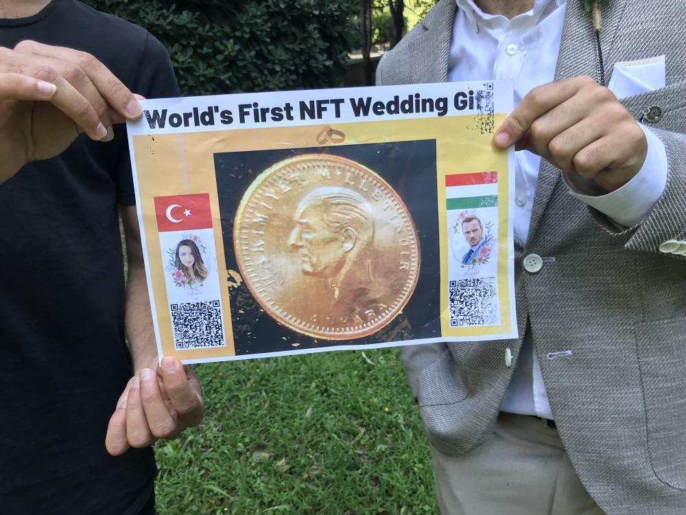 Boğaziçi Üniversitesi lisans öğrencileri Cengiz Kılıçarslan ve Haluk Gül, NFT teknolojisiyle uzun zamandır yakından ilgileniyor. Bu alanda iki ayrı şirket de kuran gençler, bir kâğıda çıktısını aldıkları dijital NFT takısının özel kare koduyla arkadaşlarının düğününde yerlerini aldıklarını söylüyor. Boğaziçi Üniversitesi Matematik bölümü ikinci sınıf öğrencisi Cengiz Kılıçarslan geçen ağustosun sonunda düzenlenen düğünde NFT düğün takısını nasıl taktıklarını şu sözlerle anlatıyor: