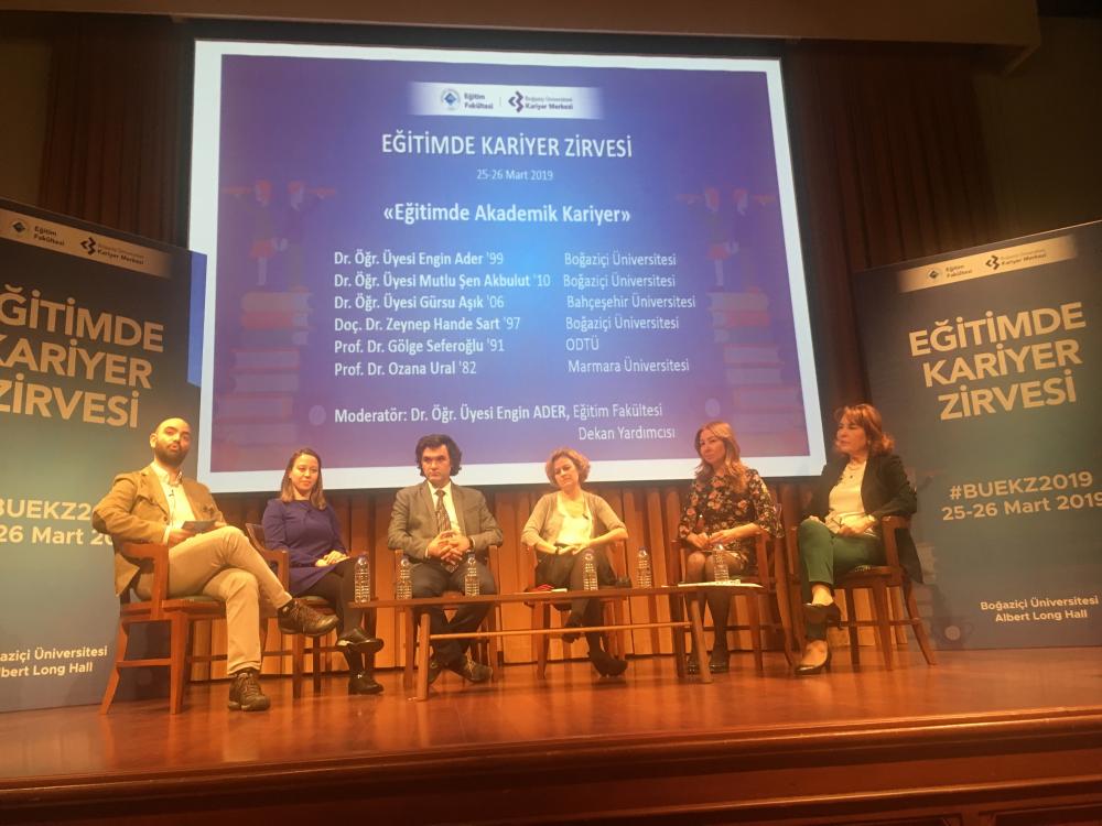 Zirvenin son panelinde ise Boğaziçi Üniversitesi’nden mezunu olmuş ve akademik kariyer yolunu seçmiş akademisyenler dinleyicilerle deneyimlerini paylaştı. Marmara Üniversitesi Atatürk Eğitim Fakültesi’nde bir çok idari görevde bulunmuş Eğitim Bilimleri Enstitüsü Müdürlüğü yapmış olan Prof. Dr. Ozana Ural ve Ortadoğu Teknik Üniversitesi Eğitim Fakültesi eski dekanı Prof. Dr. Gölge Seferoğlu gibi deneyimli akademisyenlerin yanı sıra; akademik kariyerine yeni başlamış Bahçeşehir Üniversitesi’nden Dr. Öğretim Üyesi Gürsu Aşık ve Boğaziçi Üniversitesi’nden Dr. Öğretim Üyesi Mutlu Şen Akbulut ile Boğaziçi Üniversitesi'nde çok yönlü katkıları ve idari görevleri ile öne çıkan akademisyenler Doç. Dr. Hande Sart ve Dr. Öğretim Üyesi Engin Ader’in konuşmacı olarak katıldıkları bu panelde akademisyenler hem kariyer yolculuklarında Boğaziçi deneyiminin onlara neler kattığına değinirken hem de akademisyenlik ile ilgili tavsiyelerde bulundular.