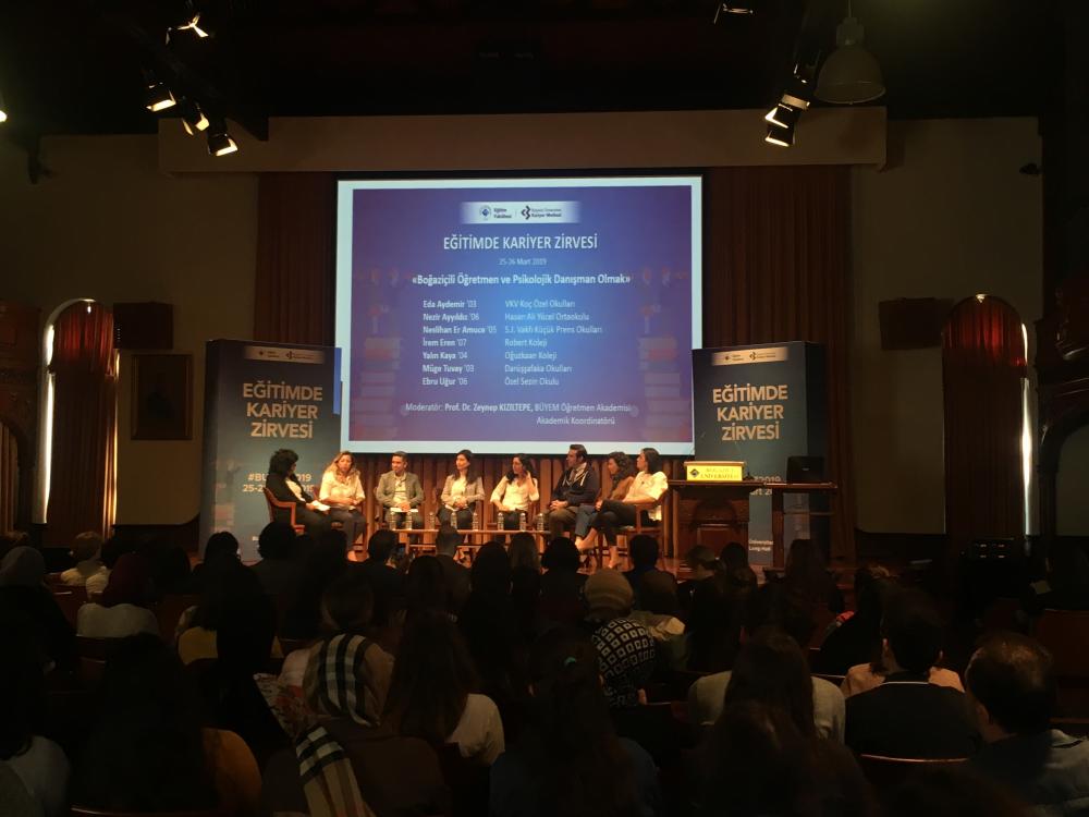 Zirvenin ikinci gününde ise Prof.Dr. Zeynep Kızıltepe’nin moderatörlüğünü yaptığı “Boğaziçili Öğretmen ve Psikolojik Danışman Olmak” panelinde 2003 yılında ilköğretim matematik öğretmenliği programından mezun olan Koç Ortaokulu matematik öğretmeni ve bölüm başkanı Eda Aydemir, 2006 yılında ilköğretim matematik öğretmenliği programından mezun olan Hasan Ali Yücel Ortaokulu matematik öğretmeni Nezir Ayyıldız, 2005 yılı bilgisayar ve öğretim teknolojileri eğitimi bölümü mezunu Saint Joseph Vakfı Küçük Prens Okulları eğitim teknolojileri koordinatörü Neslihan Er Amuce, 2007 yılında İngilizce öğretmenliği programından mezun olan Robert Koleji İngilizce öğretmeni İrem Eren, 2004 yılında rehberlik ve psikolojik danışmanlık programından mezun olan Oğuzkaan Koleji okul psikolojik danışmanı ve psikolojik danışmanlık birimi başkanı Yalın Kaya, 2003 yılında fen bilgisi öğretmenliği programından mezun olan Darüşşafaka Ortaokulu fen bilgisi öğretmeni ve müdür yardımcısı Müge Tuvay ve 2006 yılında okul öncesi öğretmenliği programından mezun olan Özel Sezin Okulu okul öncesi öğretmeni Ebru Uğur konuşmacı olarak yer aldı ve dinleyicilerle deneyimlerini paylaştı.
