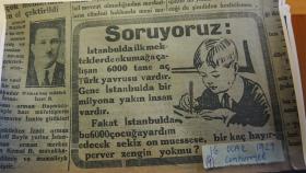 16 Ocak 1929 tarihli Cumhuriyet gazetesi ‘’Soruyoruz’’ başlığıyla yaptığı haberle okul çağında ve ihtiyaç sahibi yoksul çocuklara işte bu cümlelerle dikkat çekiyor.Prof. Dr. Zeynep Kızıltepe’nin yürütmüş olduğu ‘’1923-1950 Döneminde Eğitimin Yazılı Basına Yansıyan Yüzü’’ araştırmasında karşımıza çıkan bu kupür yalnızca bir örnek.