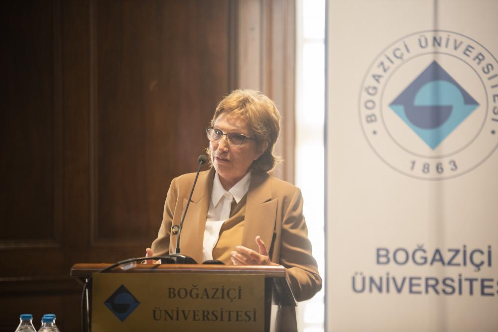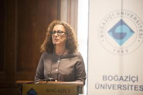 Tarsus - Gözlükule Höyüğü Kazı Başkanı ve Boğaziçi Üniversitesi Tarih Bölümü Öğretim Üyesi Prof. Dr. Aslı Özyar konuşmasında, Tarsus - Gözlükule Kazı Projesi’nden bahsederek kazı tarihindeki iki kadın arkeolog Hetty Goldman ve Machteld Johanna Mellink’in önemli katkılarını dinleyicilere aktardı. Yapılan kazılarla Neolitik dönemde kurulan Gözlükule’deki yerleşimin Erken İslami döneme değin uzun süreli, ara verilmeden kullanıldığının belirlendiğini söyleyen Aslı Özyar; kazıların 2001 yılında Boğaziçi Üniversitesi bünyesinde, Bryn Mawr College'ın iş birliği ile yeniden başlamasıyla Tarsus – Gözlükule Kazıları Araştırma Merkezi’nin bir çırçır fabrikasından araştırma merkezine dönüşen tarihi devamlılığı ile arkeolojik kazılarda amaçlanan sürdürülebilirliğin örtüştüğünü dile getirdi. Araştırma Merkezi’nin yaz aylarında sürdürülen kazı çalışmaları esnasında kullanımına dair örnekler de sunan Prof. Dr. Aslı Özyar, kazı projesinin yeniden başlamasında rol oynayan ve destek veren Boğaziçi Üniversitesi önceki rektörlerinden Prof. Dr. Gülay Barbarosoğlu’na, Boğaziçi Üniversitesi Tarih Bölümü öğretim üyesi Prof. Dr. Selçuk Esenbel’e, 2009 yılında vefat eden Boğaziçi Üniversitesi Tarih Bölümü öğretim üyesi Prof. Dr. Günhan Danışman’a, Boğaziçi Üniversitesi Kimya Bölümü’nden Emeritus Prof. Dr. Hadi Özbal’a ve kazı ekibinde yer alanlara teşekkürlerini sundu.