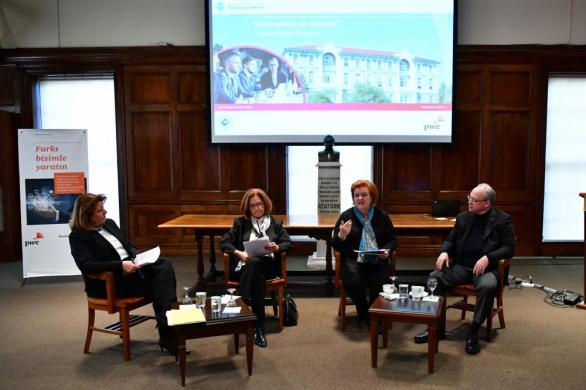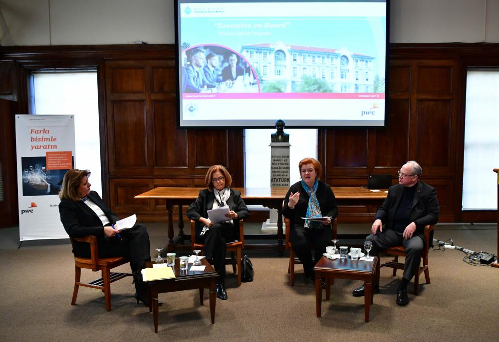 Oturumun ardından gerçekleşen Etkin Yönetim Kurulu Paneli, çok sayıda özel kuruluş ve kamu kuruluşunda üst düzey yöneticilik yapmış Gülsüm Azeri ve Canan Özsoy’u ağırladı. Executive on Board Programı Akademik Koordinatörü Prof. Dr. Nur İrem Nuhoğlu’nun moderatörlüğünü yürüttüğü ve PwC Türkiye Başkanı Haluk Yalçın’nın da konuşmacı olarak katıldığı panelde, eğitim programı katılımcılarının yöneticiliğe dair soruları yanıtlandı.