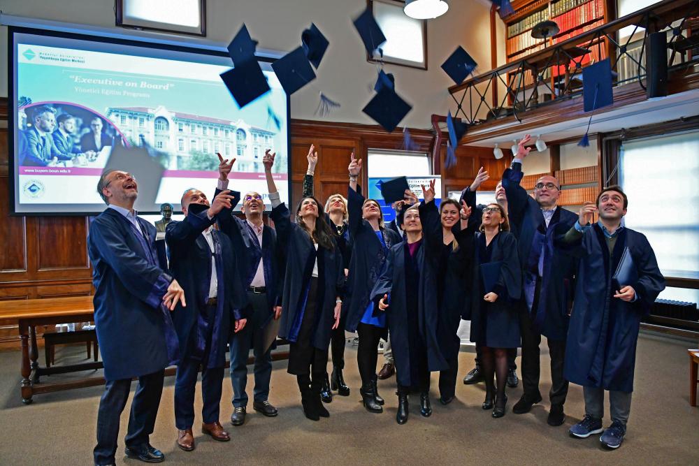 PwC Türkiye ve Boğaziçi Üniversitesi Yaşamboyu Eğitim Merkezi (BÜYEM) tarafından tasarlanan Executive on Board Yönetici Eğitim Programı ilk mezunlarını verdi. 17 Kasım 2018’de başlayan 72 saatlik eğitim programı, yönetim kurulunun işleyişi, kurumsal sürdürülebilirlik, yönetim kurulu üyelerinin sorumlulukları gibi konulardan teknoloji, inovasyon ve dijitalleşme gibi alanlara yönelik yönetim kurulu üyeleri, üye adayları ve C-Suite yöneticilerini bilinçlendirmeyi amaçlıyordu. Boğaziçi Üniversitesi Rektörü Prof. Dr. Mehmed Özkan, Rektör Yardımcısı Prof. Dr. Ayşın Ertüzün, İktisadi ve İdari Bilimler Dekan Yardımcısı Prof. Dr. Nur İrem Nuhoğlu, PwC Türkiye Başkanı Haluk Yalçın ve BÜYEM Müdürü Tamer Atabarut’un elinden sertifikalarını alan katılımcılar, programın son oturumunu da Rektörlük Konferans Salonu’nda dinleme fırsatı yakaladılar.