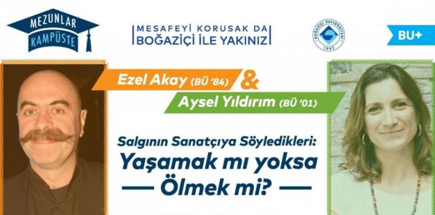 Boğaziçi Üniversitesi Mezunlar Ofisi’nin başlattığı ‘’Mezunlar Kampüste’’ etkinliği 30 Nisan’da tiyatro oyuncusu, yazar, eğitmen Aysel Yıldırım (BÜ ’01) ve Boğaziçi Üniversitesi Makine Mühendisliği mezunu, sinemacı Ezel Akay’ın (BÜ’84) Zoom platformu üzerinden buluştuğu sohbetle başladı.