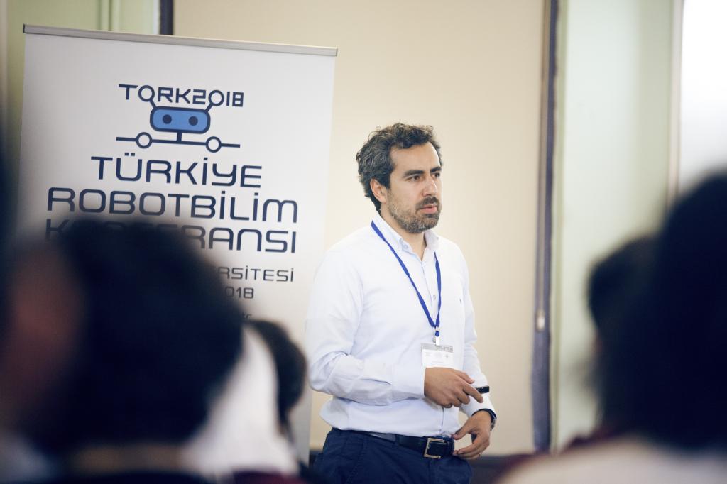 ToRK 2018’in bir diğer konuğu ise Koç Üniversitesi öğretim üyesi Çağatay Başdoğan’dı. “Dokunsal Kanal Üzerinden Fiziksel İnsan-Robot Etkileşimi” başlıklı bir konuşma yapan Başdoğan, ekibi ile birlikte yürüttükleri dört ayrı deneyin sonuçlarını katılımcılarla paylaştı. İki insan arasındaki etkileşimde doğal bir şekilde karşılıklı olarak niyetlerin anlaşılabildiğini aktaran Başdoğan, insan-robot ilişkisinde robotun insanın niyetini anlayabilmesini sağlamaya çalıştıklarını, bunu da dokunsal kanal üzerinden yapmaya çabaladıklarını belirtti.