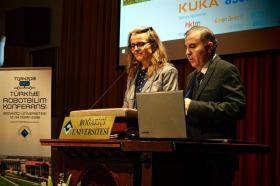 “Robotların insanlarla birlikte çalışmasını istiyoruz” diyen KUKA Müşteri Servisi Müdürü Onur Altuntaş, insan gücünü sabahtan akşama kadar tekrar eden bir işi yapmak yerine bunu yapan robotları kontrol eden bir güç olarak görmek istediklerini belirtti. Türkiye’deki 10 bin civarı olan robotun 8 bininin taşıma veya kaynak için kullanıldığını belirten Altuntaş, pazarın ihtiyaçlarını karşılayan stratejilerin geliştirilmesinin ve yerli yol haritasına sahip olmamız gerektiğini vurguladı.