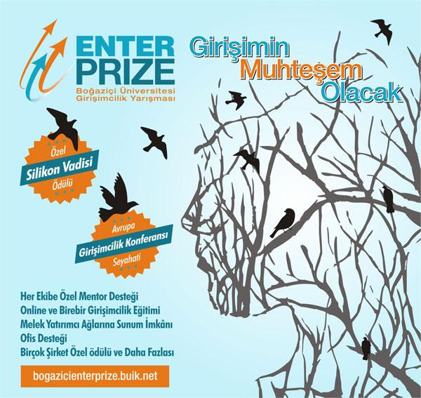 Geleceğin iş dünyasında önemli rol oynayacak olan katılımcılar rekabetin ve eğitimin bir arada olduğu uzun bir süreçten geçerek 9 Mayıs tarihinde Türkiye’nin önde gelen iş adamlarının karşısında projelerinin sunumunu yapacaklar. Yarışma sonucunda IDEA ve PRO kategorilerinde ayrı ayrı olmak üzere ilk 2 proje Silikon Vadisi’ne gitme, Avrupa’da gerçekleşecek olan bir teknoloji zirvesine katılma ve birçok yatırımcı karşısında sunum yapma şansı kazanacak. Bunun dışında pek çok gruba ekosistemin önde gelen kurum ve isimleri tarafından ofis ve mentorluk desteği ile melek yatırımcılara sunumlarını yapma gibi imkanlar da sağlanacak. Detaylı bilgiye yarışmanın web sitesinden - www.bogazicienterprize.com – ulaşabilirsiniz. Son başvuru tarihi: 25 Mart