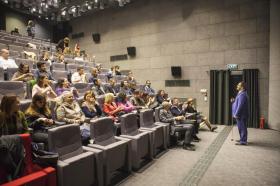 SineBU'nun erişilebilirlik açısından sunduğu imkanlara ve ilk defa bir sinema salonunda hayata geçirilen Sesli Betimleme uygulamasına da değinen Hande Sart ise engelsiz erişim çalışmalarının felsefi –etik boyutuna dikkat çekerek bu noktada engelli öğrenci temsilciliğini son derece önemsediklerini ifade etti. Sart, tanıtımı yapılan oy pusulasının Boğaziçi Üniversitesi’nde öğrenci temsilciği seçimlerinde son iki yıldır kullanılmakta olduğunu sözlerine ekledi.