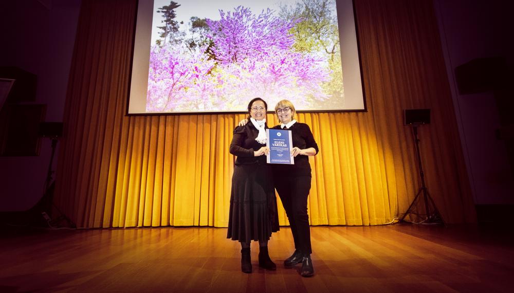 Konuşmanın ardından Eleni Varikas’a teşekkür plaketini, Hrant Dink’in eşi Rakel Dink takdim etti. Rakel Dink, konferans için Boğaziçi Üniversitesi’ne de teşekkürlerini sundu.