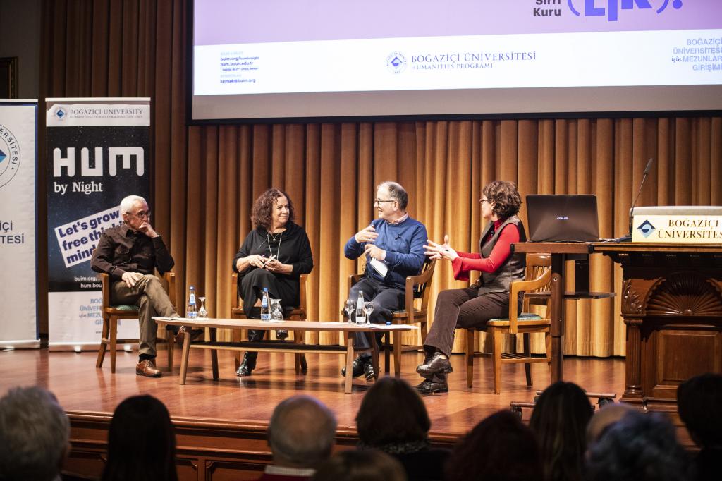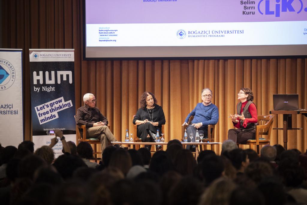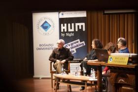 Gecenin açılış konuşmasını yapan Boğaziçi Üniversitesi Humanities Dersleri Koordinatörü Dr. Leyla Kayhan Elbirlik, 1957 yılından beri verilmekte olan Humanities derslerinin 2015 yılında kurulan Humanities Dersleri Koordinatörlüğü’ne bağlanarak her dönem 600’e yakın öğrenciye ulaştığını belirtti. Humanities derslerinin eleştirel düşünme, farklılıkları kabul etme ve etik değerleri hatırlamadaki rolünden bahseden Dr. Leyla Kayhan Elbirlik, dersin en önemli katkısının ortak kültürel ve entelektüel bir dil yaratmak olduğunu dile getirdi. Elbirlik, HUM By Night konuşmalar serisinin nasıl ortaya çıktığını ise şöyle aktardı: “2 sene önce dersleri devam ettirmeye yönelik mali sıkıntılar yaşarken ‘Boğaziçi Üniversitesi için Mezunlar Girişimi’nden arkadaşlarla tanıştım. Boğaziçi için Humanities derslerinin olmazsa olmaz bir şey olduğunu söyleyerek yardım etmek istediler ve beraber HUM By Night etkinliğine başladık.” 3.defa düzenlenen konuşmalar serisiyle her seferinde artarak güçlendiklerini gözlemlediğini paylaşan Elbirlik, etkinliğin düzenlenmesinde emeği geçen herkese teşekkür ederek sözlerini sonlandırdı.