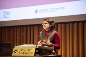 Öğrenciler adına konuşma yapan Boğaziçi Üniversitesi Elektrik ve Elektronik Mühendisliği Bölümü öğrencisi Mert Gökduman ise Humanities dersinin neden en sevdiği ders olduğunu anlattı: “Her Humanities dersinin başında sorduğumuz sorular kendi düşünce hayatımın değişmesini de sağladı. Düşünmeyi yeni öğrenmeye başlamış bir çocuk gibi hissediyorum.” Gökduman hala güncelliğini koruyan sorunlar üzerine konuşmayı cesaretlendiren akademisyenlerle tartışma olanağı bulmanın çok değerli olduğunu da sözlerine ekledi.