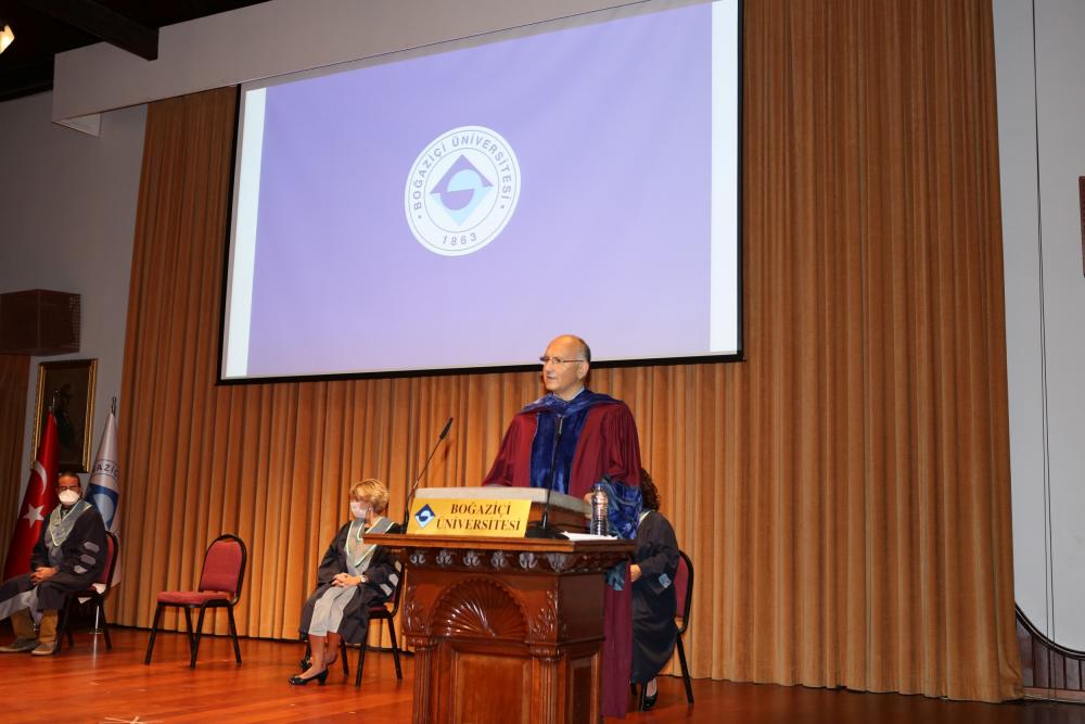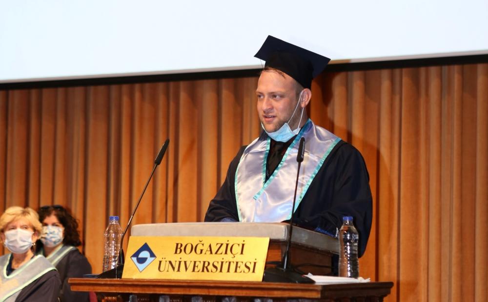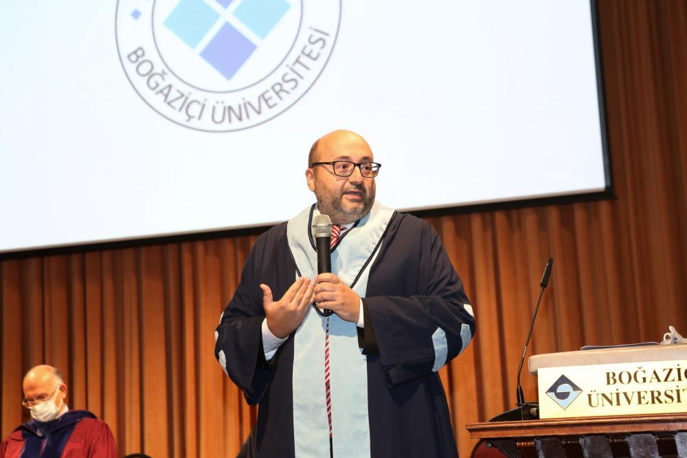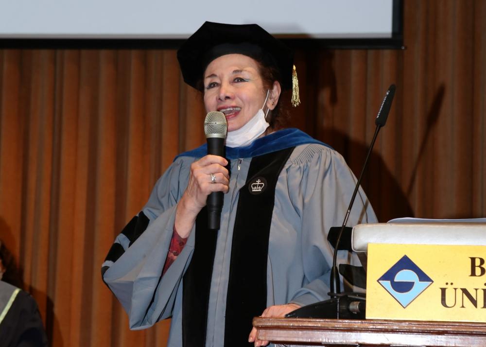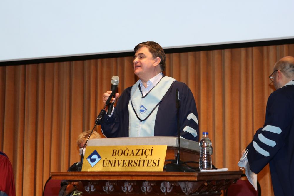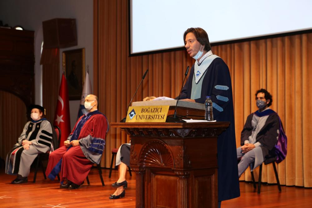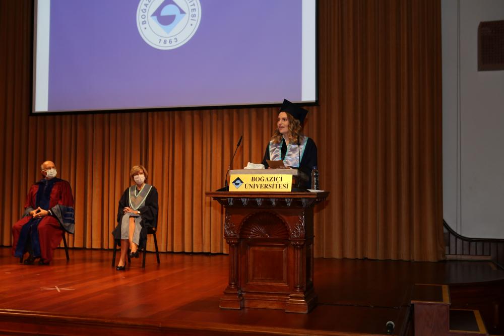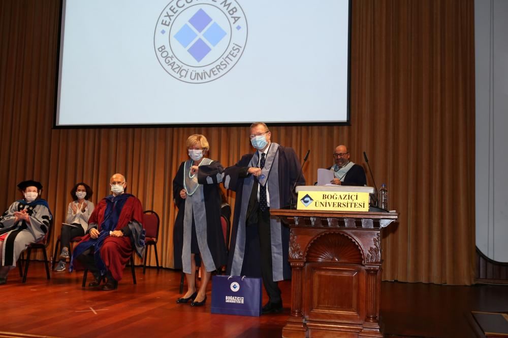 Gün boyu süren törenlerin sonuncusu ise Executive MBA Yüksek Lisans Programı mezunları için düzenlendi. Bu yıl 24 kişinin mezun olduğu programın töreninde SBE Müdürü Prof. Dr. Ünal Zenginobuz ve İşletme Bölüm Başkanı Prof. Dr. Metin Ercan’ın konuşmalarının ardından, konuk konuşmacılar Tekfen Holding Başkan Yardımcısı Doç. Dr. Reha Yolalan ve Executive MBA Yüksek Lisans Programı 2005 yılı mezunu da olan Akbank İnsan Kaynakları ve Strateji Genel Müdür Yardımcısı Burcu Civelek Yüce söz aldı. 2020 mezunları adına konuşma ise Kaan Erçin tarafından gerçekleştirildi.