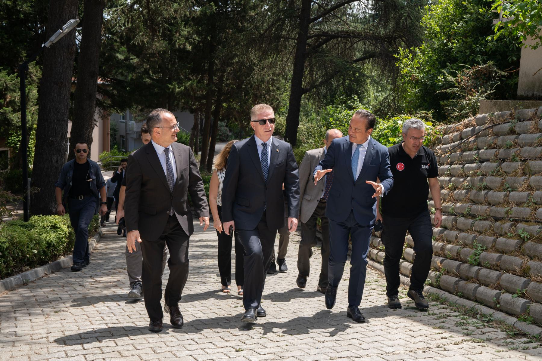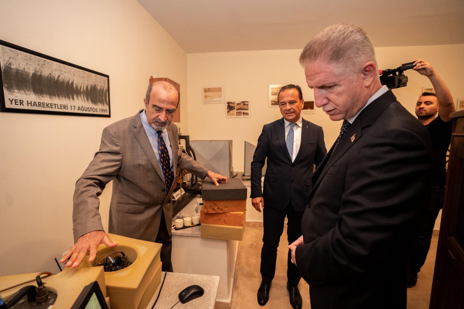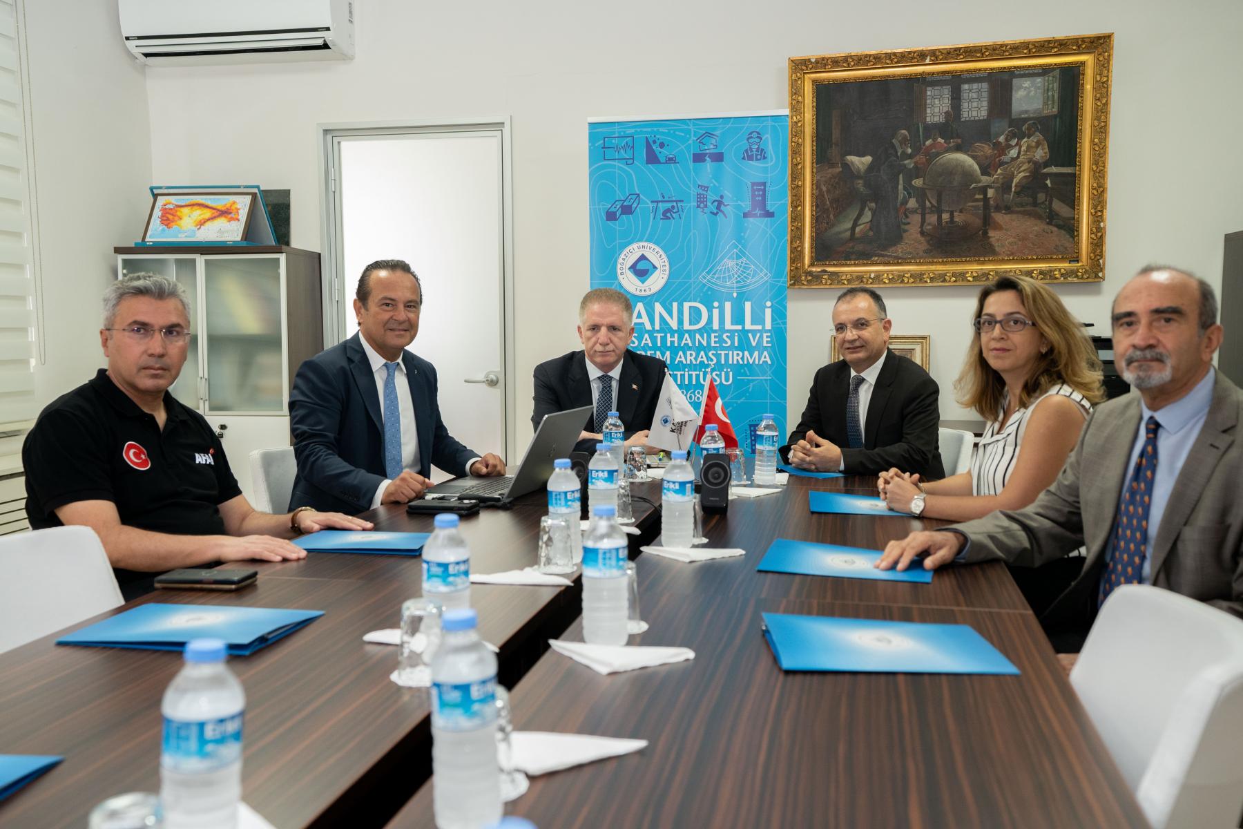 Vali Gül'e Boğaziçi Üniversitesi Rektör Yardımcısı Prof. Dr. Gürkan Selçuk Kumbaroğlu ile KRDAE Müdürü Prof. Dr. Haluk Özener, KRDAE Müdür Yardımcısı Dr. Tülay Kaya Eken, BDTİM Müdürü Doç. Dr. Doğan Kalafat ile AFAD İl Müdürü Ercan Akar da eşlik etti.