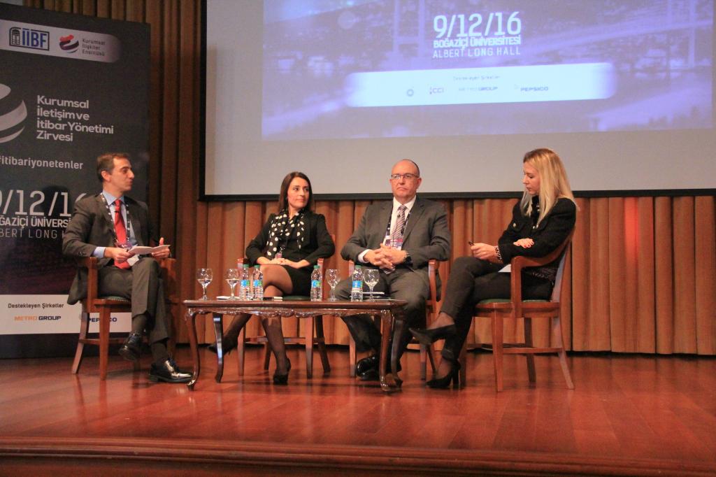 Moderatörlüğünü Boyner Holding Başkan Yardımcısı İdil Türkmenoğlu’nun üstlendiği “Kurumsal İtibar Yönetimi Uzmanlığının Üst Yönetimdeki Rolü” adlı oturuma, Egon Zehnder Türkiye Genel Müdürü Murat Yeşildere, Türkiye Korn Ferry Genel Müdürü Nilgün Langenberg konuşmacı olarak katıldı.Şirket çalışanlarının birer marka elçisi olduğunu belirten Murat Yeşildere, kurumsal itibardan bahsetmek için kurum merkezli değil birey merkezli düşünmek gerektiğinden bahsetti.Ayrıca konuşmasında Türkiye’de kurumsal ilişkilere departmanına olan talep azlığından yakınan İdil Türkmenoğlu, kurumsal ilişkiler departmanını bir zamanın insan kaynakları deparmanına benzeterek öneminin zaman içerisinde anlaşılacağına değindi.
