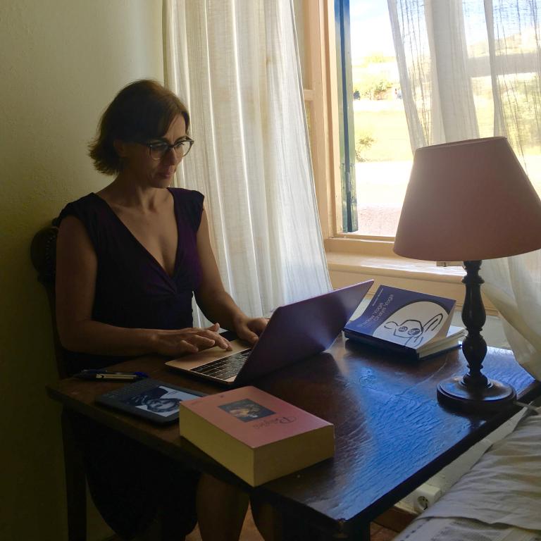 İsmim Defne. Hayatımın on yılını Boğaziçi Üniversitesi’nin sosyoloji bölümünde, çimlerinde, orta kantinde, aşağıdaki yüzme havuzunda geçirdim. Bu on yılın son üçünde bölümde araştırma görevlisi olarak çalışıyordum. Öğle tatillerinde Rumelihisarı’ndaki büfeden bol soslu sosisli sandviç alıp Ali Baba’nın kahvesinde büyük su bardağında gelen çayımla içtim, tek başıma denize bakıp roman okudum. (öğle tatilimizi uzundu) Hayatımın en güzel on yılıydı. Bugünkü kimliğimin hamuru o yıllarda tanıştığım insanlar, okuduğum kitaplar ve o zamanlarda yaşadıklarımla yoğruldu. Yogayı geleneğine uygun bir biçimde öğretmeyi amaçlayan bir okulun öğrencisi ve öğretmeniyim. Roman yazıyorum. Atina’da yaşıyorum. Türkiye’de sadık bir öğrenci ve okur kitlem var. Sık sık onlarla bir araya gelmek üzere İstanbul’a, İzmir’e seyahat ediyorum.