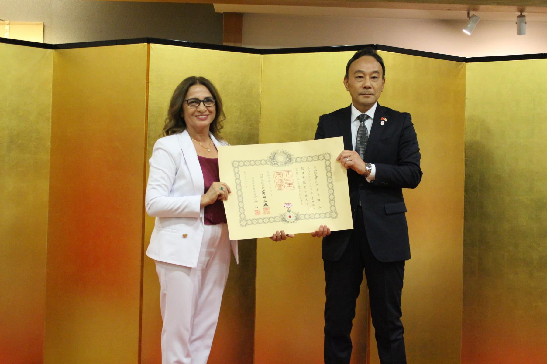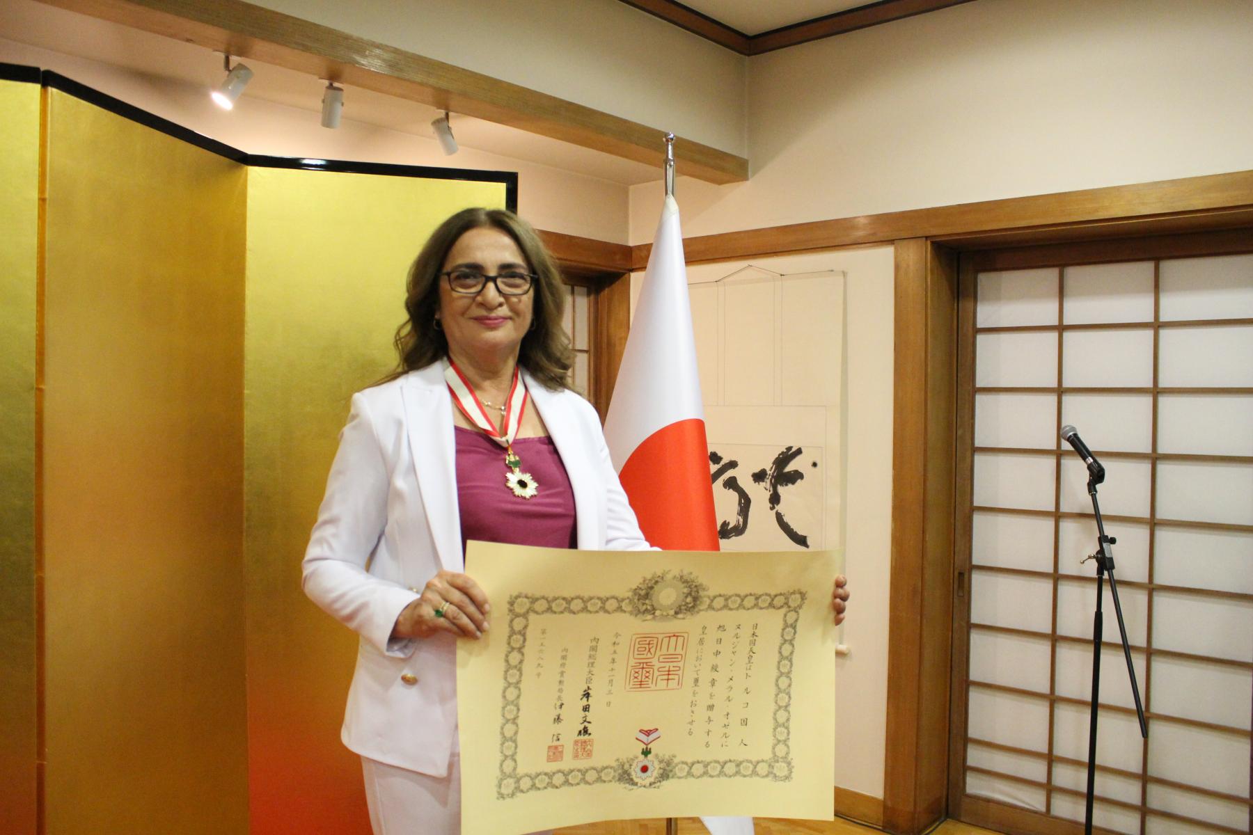 Dünyada sismoloji alanındaki çalışmaları ile nükleer karşıtı faaliyetlerde aldığı öncü rollerle tanınan Boğaziçi Üniversitesi KRDAE Müdürü Prof. Dr. Nurcan Meral Özel’e “Altın Işıklar ve Yükselen Güneş Devlet Nişan”ı Japonya’nın Ankara Büyükelçiliği’nin resmi konutunda Büyükelçi Katsumata Takahiko tarafından törenle takdim edildi.