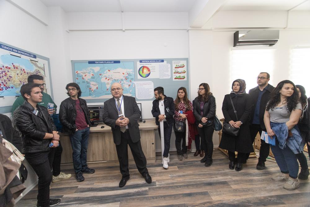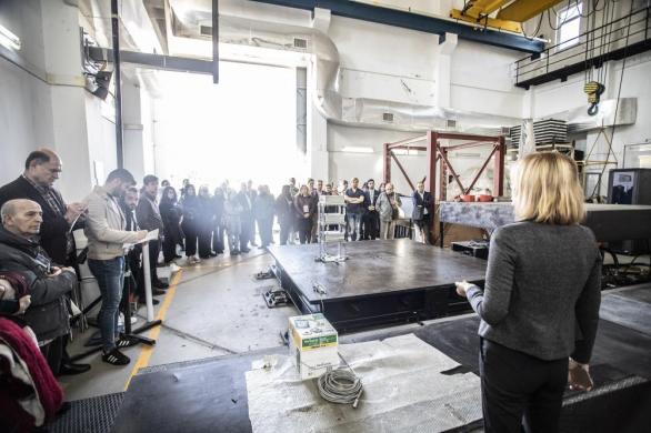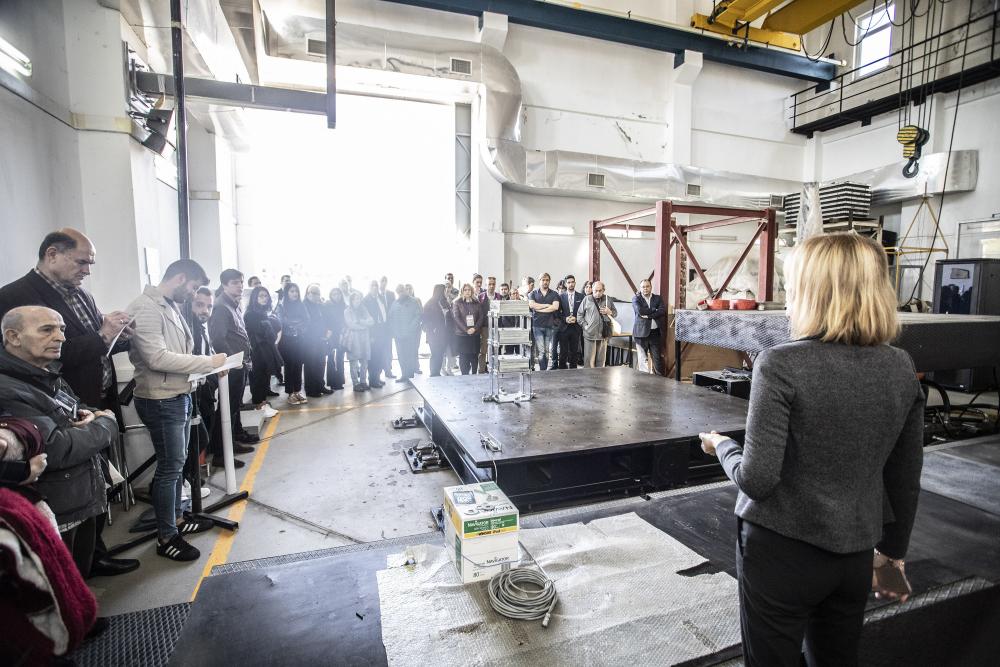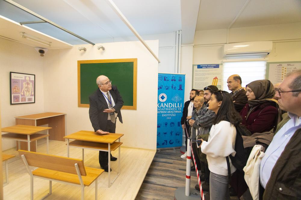 Katılımcılar, Prof. Dr. Ayşe Edinçliler’in sunumu sonrası sarsma masası laboratuvarına giderek bir demonstrasyon testini izleme, ayrıca mobil sismik sarsıcıyı görme şansını elde etti.
