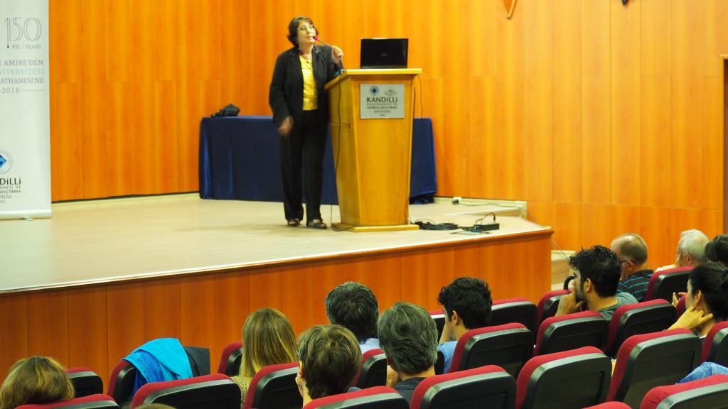Prof. Dr. Orhan Gölbaşı’nın ardından sunumuna başlayan Kandilli Rasathanesi Astronomi Laboratuvarı Şefi Hülya Yeşilyaprak, Güneş sistemi hakkında davetlileri bilgilendiren bir konuşma yaptı ve Kandilli Rasathanesi’nin Güneş gözlemlerine de yer veren disiplinler arası yapısından bahsetti. “Kandilli Rasathanesi’nin Türkiye’deki diğer rasathanelerden en önemli farkı çok disiplinli olması” ifadelerini de sözlerine ekleyen Yeşilyaprak, adli astronomi gibi toplumun ihtiyaçlarına cevap vermek üzere gerçekleştirilen çalışmalarda da Kandilli Rasathanesi’nin yetkili kurum olduğuna dikkat çekti.