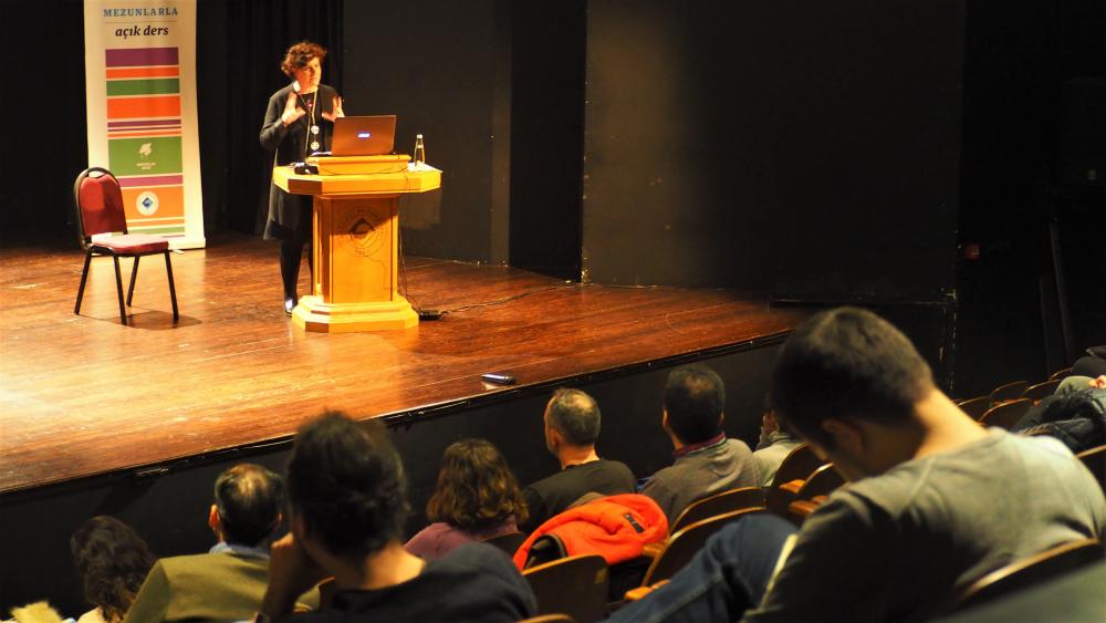 Doç. Dr. Ayfer Bartu Candan, “Şehrin Doğası: İstanbul'da Hava, Su ve Yeşil” başlıklı dersinde İstanbul’da son 10-15 yıldır yaşanan ve kent sosyolojisi kapsamında ele alınabilecek değişimleri aktardı. İstanbul’daki mega projeler ve kentsel dönüşümler ölçeğinde dönüşen konut hayatındaki farklılıkları konuşmanın merkezine taşıyan Candan, yaşam alanlarında nasıl mekânlar talep edildiği ve İstanbul’da nasıl bir kent doğası tahayyül edildiği sorularını tartışmaya açtı.