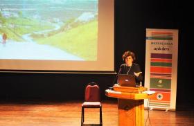 Kentsel dönüşüm projelerinin farklı türlerini özetledikten sonra kent yoksullarının ve varsıllarının beraber ele alınması gerektiğine işaret eden Ayfer Bartu Candan, İstanbul’da kent varsıllarının yaşamlarında da çeşitli dönüşümler gözlemlendiğinin altını çizdi. Candan konuşmasını şu sözlerle sürdürdü: “1980 ortalarından itibaren görülen daha üst-orta ve orta sınıf için başlatılan kapalı sitelerin, öykünülen bir hayat biçimi olarak ortaya çıktığını söyleyebiliriz. Kent literatüründe ve ana akım medyada gecekondularla ilgili çok tartışma vardır ve kentin yaşadığı ekolojik meselelerin faturası genelde gecekondu mahallelerine kesilir. Fakat öykünülen bir yaşam biçimi olarak kapalı siteler de şehirdeki sistemin parçaları. Yeni kapalı site projelerinde gördüğümüz ortak noktalardan biri buraların daha çevreci, doğaya yakın, şehrin doğasını temiz tutan yerleşimler şeklinde pazarlandıkları gerçeğidir. Ancak şehrin dışında konumlansalar da kapalı site yerleşimleri; su, kanalizasyon gibi altyapı sistemlerini şehirle ortak kullanıyorlar. Ayrıca yapay göl, boğaz yaratan yeni konut projelerinde su kullanımının fazla olduğunu görüyoruz."
