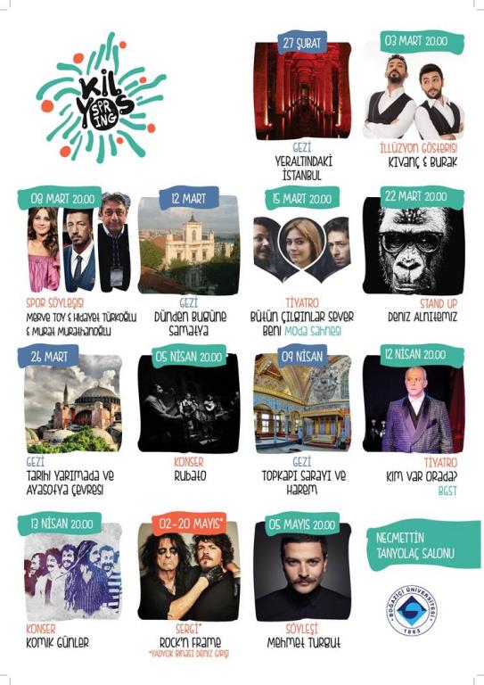 Kilyos Sarıtepe Kampüsü, 5 Nisan akşamı Rubato konserine, 13 Nisan akşamı ise Komik Günler konserine evsahipliği yapacak. Necmettin Tanyolaç Salonu ‘ndaki konserlerin başlama saati 20.00.