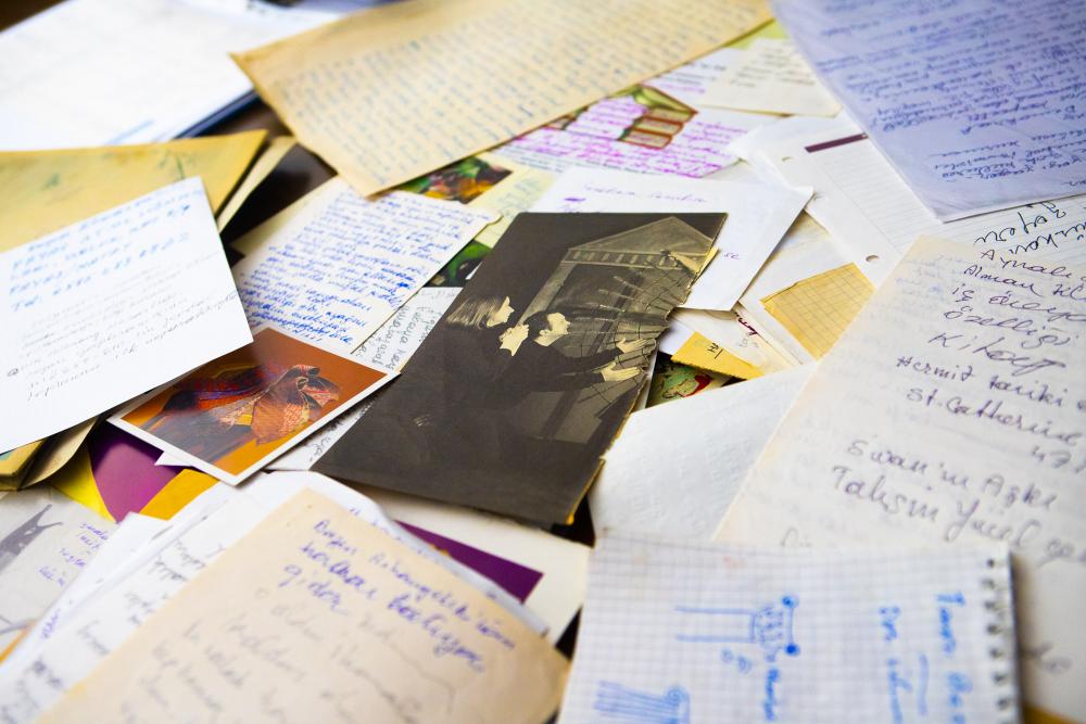 Olcay Akyıldız: Öncelikli amacımız arşivi koruma altına almak olduğu için her belgeyi bütün ayrıntısıyla okuyamayabiliyoruz. Örneğin, karşımıza birden “Komşum ona bu düz betona nasıl tırmanabildiğimi sorduğunda fare ayaklarım olduğunu söyledim oysa,” yazan bir not çıkıyor. Bu bir not mu, yoksa bir romanın parçası mı diye hızlı bir karar veremeyiz, çünkü şu andaki amacımız arşivi muhafaza etmek, malzemelerin anlamlandırılması ise ikinci aşama olacak.