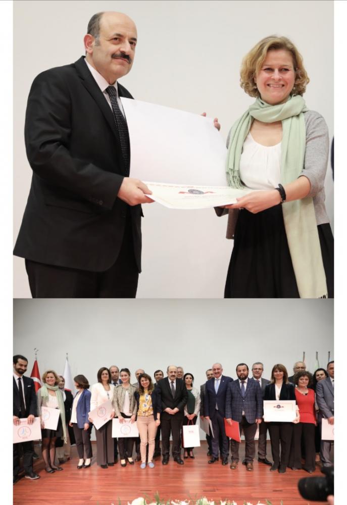 “Engelsiz Ufuklar Çalıştayı”nda Boğaziçi Üniversitesi adına ödülü alan Doç. Dr. Z. Hande Sart, Mühendislik Fakültesi’nde yürütülen erişilebilirlik çalışmalarını şöyle anlattı: “Geçen sene aynı kategorilerde Eğitim Fakültesi bu ödüle layık bulunmuştu. Mühendislik Fakültesi ise adaylık statüsünü almıştı. Bu sene gecikmeli ödülümüzü aldık. Mühendislik Fakültesi’nde erişilebilirliğe dair çalışmalar epey uzun süre önce başlamıştı. Fakülte’nin akreditasyon süreçlerinde engellilik bağlamındaki kriterler dikkate alınmıştır ve evrensel tasarım ilkesi çerçevesinde hayata geçmiş düzenlemeler örnek teşkil edecek niteliktedir. Ödüle başvuru sürecinde GETEM, Mühendislik Fakültesi Dekanlığı ve Yapı İşleriyle birlikte çalışmıştır. Bu çalışma ayrıca bize hangi alanlarda eksiklerimiz olduğunu da göstermektedir.”