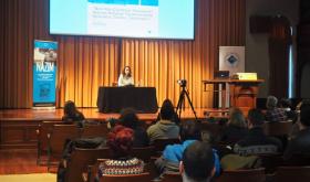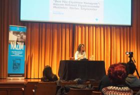 “Ben Yüz Çiçekten Yanayım”: Nâzım Hikmet Tiyatrosunda Metinler, Türler, Söylemler başlıklı kitabı yakında yayımlanacak olan Dr. Esra Dicle, aynı başlıkla verdiği konferansa şairin tiyatroyla ilişkisini ele alarak başladı. Nâzım Hikmet’in kimisi tamamen kimisi ise kısmen kaybolmuş 23 oyunu bulunduğunu ve 19 yaşından ölümüne kadar hiç ara vermeden oyun yazdığını paylaşan Dicle, “Nâzım Hikmet sadece bir oyun yazarı değil aynı zamanda ciddi bir tiyatro izleyicisi. Tiyatronun tüm formları üzerine düşünen ve dünya görüşünü bu formlarla nasıl temsil edebileceğini araştıran bir tiyatro insanı ama kuvvetli bir şiiri olunca bu yönü ihmal ediliyor. Oysa tiyatrosu üzerine araştırma yaptığımızda hem kendi sanatına hem de tiyatro tarihine doğru çok zengin bir yol gittiğini görüyoruz,” ifadelerini kullandı.