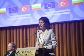 Bulgaristan’ın Ankara Büyükelçisi Nadezhda Neynsky ve AB Türkiye Delegasyonu Heyet Başkanı, Büyükelçi Christian Berger’in birer konuşma yaptıkları toplantıya AB Komisyonu Dijital Ekonomi ve Toplum uzmanı Mariya Gabriel video mesajı ile katıldı.
