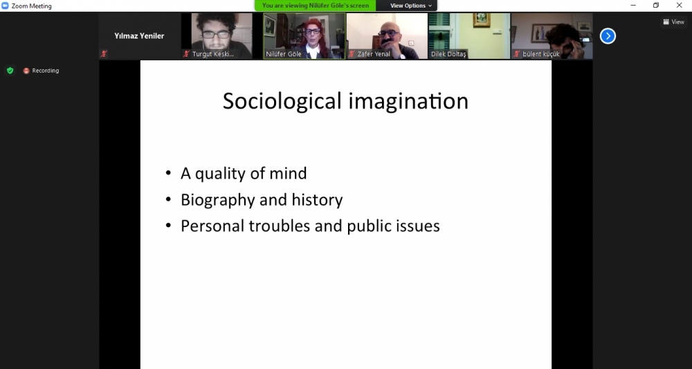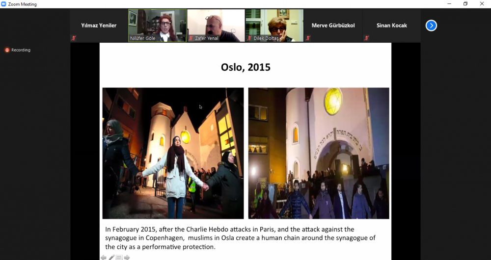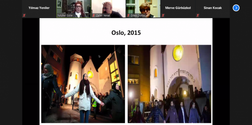 Prof. Dr. Nilüfer Göle’yi takdim eden ve etkinliğin moderatörlüğünü yapan Boğaziçi Üniversitesi Sosyoloji Bölümü Öğretim Üyesi Prof. Dr. Zafer Yenal, “Boğaziçi’nde Sosyolojik Tahayyüller” başlıklı seminer serisinde, Sosyoloji Bölümü ile daha önceden yolları kesişmiş araştırmacılar ve öğrencilerle birlikte çağdaş toplumsal konuların keşfe çıkılacağını belirtti. İçinde bulunduğumuz dönemi sosyolojik açıdan ele almak gerektiğini söyleyen Zafer Yenal, bu seminer serisinde bugünün toplumunu ilgilendiren meselelerin Sosyoloji Bölümü’nün derin entelektüel birikimi ve çeşitliliği ile tartışılacağını ekledi.