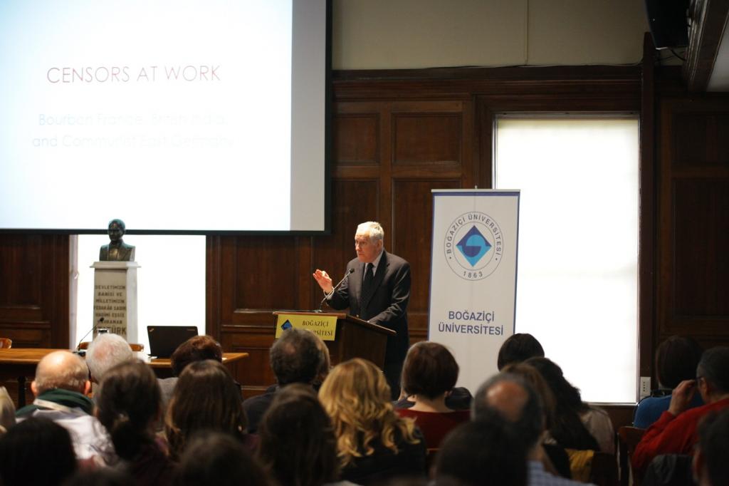 Türkiye’de, “Büyük Kedi Katliamı” eseri ile de geniş kitlelere ulaşan Robert Darnton, ‘Sansür İş Başında; Devletler Edebiyata Nasıl Yön Verdi başlıklı konferansında, sansür tarihini ele aldı. Konuşmasında sansürün ifade özgürlüğünde bıraktığı derin baskı ve izleri anlatan Prof. Darnton; “Sansür nasıl çalıştı? Nasıl algılandı? Dönemin sosyal ve politik bağlamında sansürün işlevi neydi?” sorularını irdeledi. Prof. Darnton, üç otoriter rejimi; 18.yy Fransa Bourbon Hanedanlığı, 19.yy Hindistan İngiliz hâkimiyeti, 20.yy Doğu Almanya Komünist yönetiminde yaşanan sansür ve bu dönemdeki gelişmelerdeki paralelliği gözler önüne serdi.