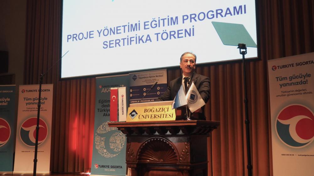 Sertifika töreninin konuşmacıları arasında yer alan Türkiye Sigorta Akademi Direktörü Doç. Dr. Ahmet Avcı ise Türkiye’nin alanında lider merkezleri arasında yer alan BÜYEM ile iş birliği hayallerinin gerçekleşmesinden dolayı duyduğu memnuniyeti ifade ederken, çalışanların gelişimine yönelik yeni programları hayata geçirmeyi planladıklarını söyledi. Türkiye Sigorta İnsan Kaynakları Müdürü Fatih Yıldız da Proje Yönetimi Eğitim Programı’nın çalışanların bu alanda gerçekleştirecekleri çalışmalara sağlayacağı katkılara değindi.