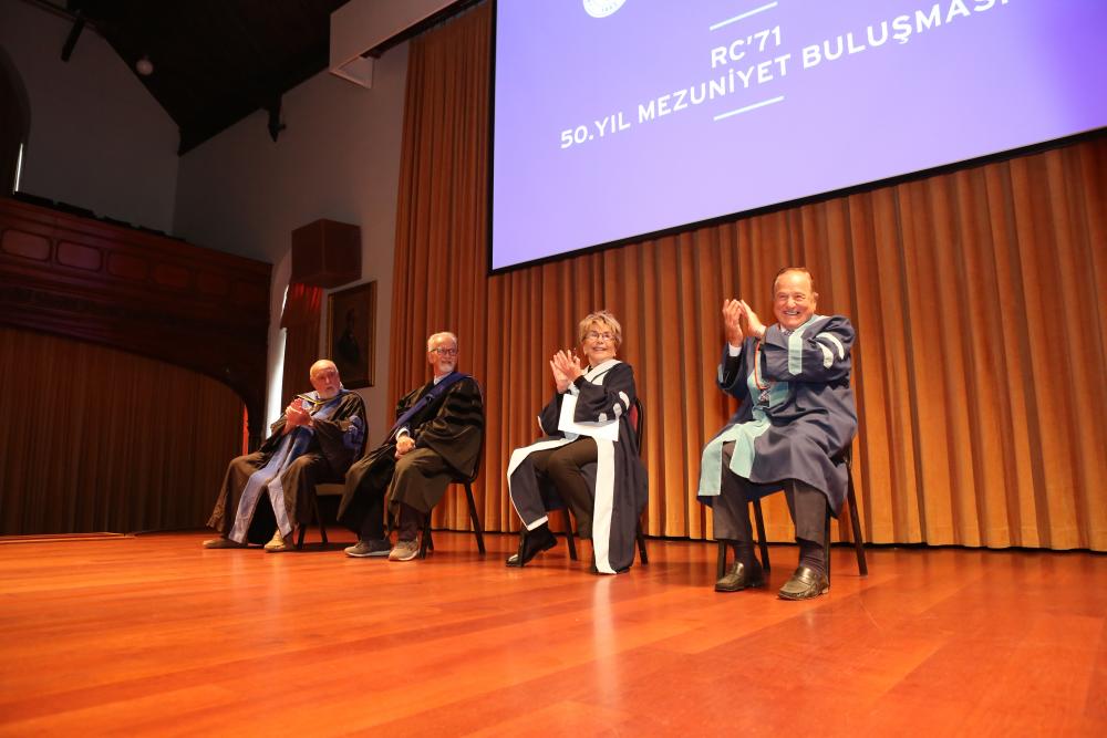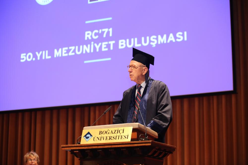 Akademisyenler adına konuşmayı Prof. Dr. Semih Tezcan ve Prof. Dr. Oya Başak yaparken, mezunlar adına İsmail Yalçınkaya konuştu. Yalçınkaya konuşmasına hayatını kaybeden dönem arkadaşlarını anarak başladı ve “Mezuniyetimizin 50’nci yılını kutlamak için Türkiye’nin dört bir yanından, Fransa’dan, Almanya’dan, Avustralya’dan gelen tüm dönem arkadaşlarıma teşekkür ederim, sizlerle olmak büyük mutluluk” diyerek sevincini dile getirdi. Robert Koleji Yüksek Okulu’nun Boğaziçi Üniversitesi’ne dönüşme sürecinde RC’71 dönemi olarak desteklerini sunduklarını belirten Yalçınkaya, törenin organizasyonu için Mezunlar Ofisi’ne teşekkürlerini ileterek sözlerini sonlandırdı.