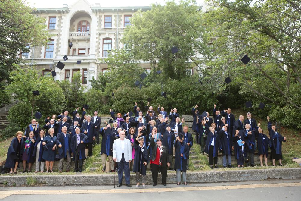 50’nci yılını kutlayan mezunlara kendi dönem hocalarından Prof. Dr. Mustafa Dilber, Prof. Dr. Özer Ertuna, Prof. Dr. Semih Tezcan ve Prof. Dr. Oya Başak da eşlik etti. Kep ve cübbeleriyle mezuniyet töreni atmosferini yeniden canlandıran mezunlar, 50’nci yıl sertifikalarını kendi hocalarının elinden aldı.