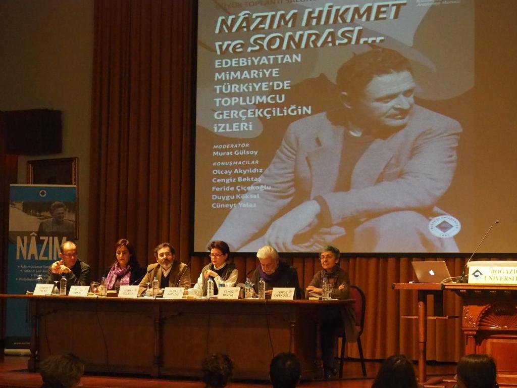 Panelde, Nâzım Hikmet’in 1930’lardan itibaren öncülüğünü yaptığı toplumcu gerçekçi sanat anlayışının başta edebiyat olmak üzere sinemadan mimariye bütün sanatlarda bıraktığı izler ele alındı.