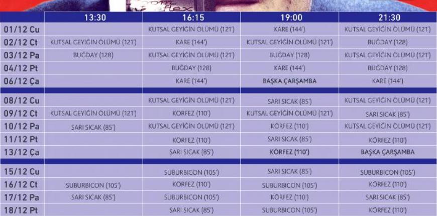 Kasım ayında gösterilen ve izleyicilerin yer bulmakta zorlandığı Kare (The Square) ile The Killing of a Sacred Deer (Kutsal Geyiğin Ölümü) filmleri Aralık ayında tekrar izleyiciyle buluşacak.