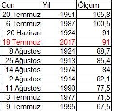 Kandilli Rasathanesi bünyesinde 1911 yılından bu yana tutulan kayıtlarda bugüne dek, aynı zamanda bu yılki kadar rekor sıcakların görüldüğü bir yaz hiç yaşandı mı?