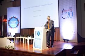 C20, 2013’te Rusya'nın G20 Dönem Başkanlığı ile beraber resmi bir katılım grubu olarak tanındı. Türkiye’nin 2015 G20 donem başkanlığı nedeni ile C20'yi bu yıl Türkiye’deki sivil toplum kuruluşları üstleniyor. C20, küresel ekonomi gündemindeki konulara ve tartışmalara ilişkin STK’ların görüş ve önerilerini G20 ülke liderlerine aktarılması amacıyla faaliyet gösteren bir sivil toplum platformudur. G20’nin altı ana çalışma grubundan biri olan C20’nin Yürütme Kurulu Başkanlığı’nı haziran ayından bu yana İktisadi Kalkınma Vakfı (İKV) Yönetim Kurulu Başkan Yardımcısı sıfatıyla Zeynep Bodur Okyay yapıyor. C20 üyeleri arasında; TÜSEV, İKV, Oxfam International, Türkiye, WWF-Türkiye, KAGİDER, TEGV, Uluslararası Şeffaflık Derneği, Türkiye Avrupa Vakfı, Habitat Türkiye Kalkınma ve Yönetişim Derneği, KEDV, Türkiye Sakatlar Konfederasyonu, gözlemci olarak AÇEV ve TEMA Vakfı yer alıyor.